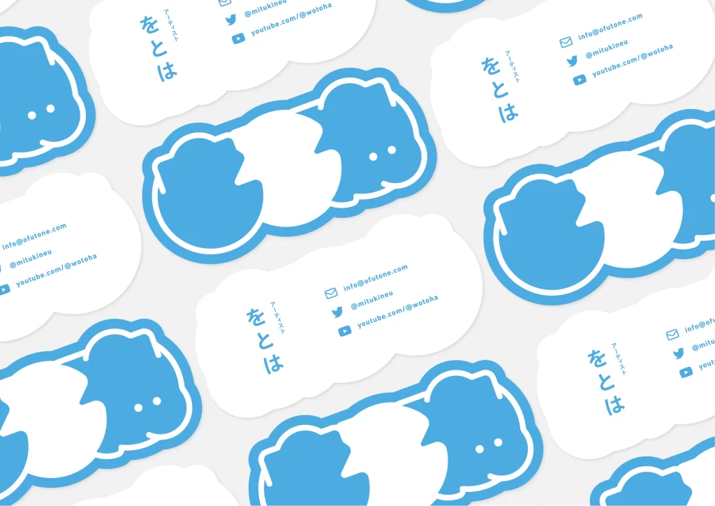 アーティストをとは様のアーティストロゴを作成しました。文字をキャラクター化し、クラゲの丸をモチーフに可愛らしい印象にしております。名刺もロゴの型抜きで作成しました。