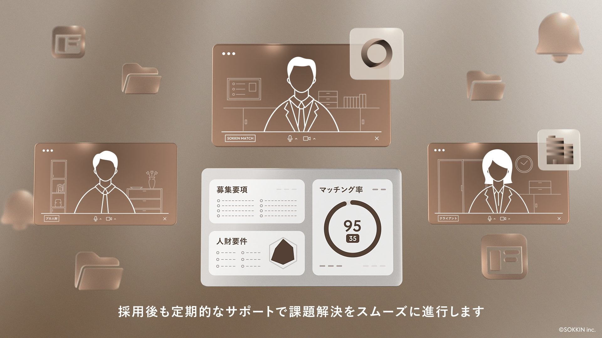 株式会社SOKKINのサービス「ACADEMY」のタクシー広告映像グラフィックを担当しました。私はモチーフのグラフィックと3DCGをつくる上でのイメージグラフィックを作成し、それをもとに3DCGを作成いただきました。 SOKKIN MATCHは、企業の経営課題や人材課題に対して、トップマーケターが厳選したプロフェッショナル人材をマッチングするプラットフォームです。