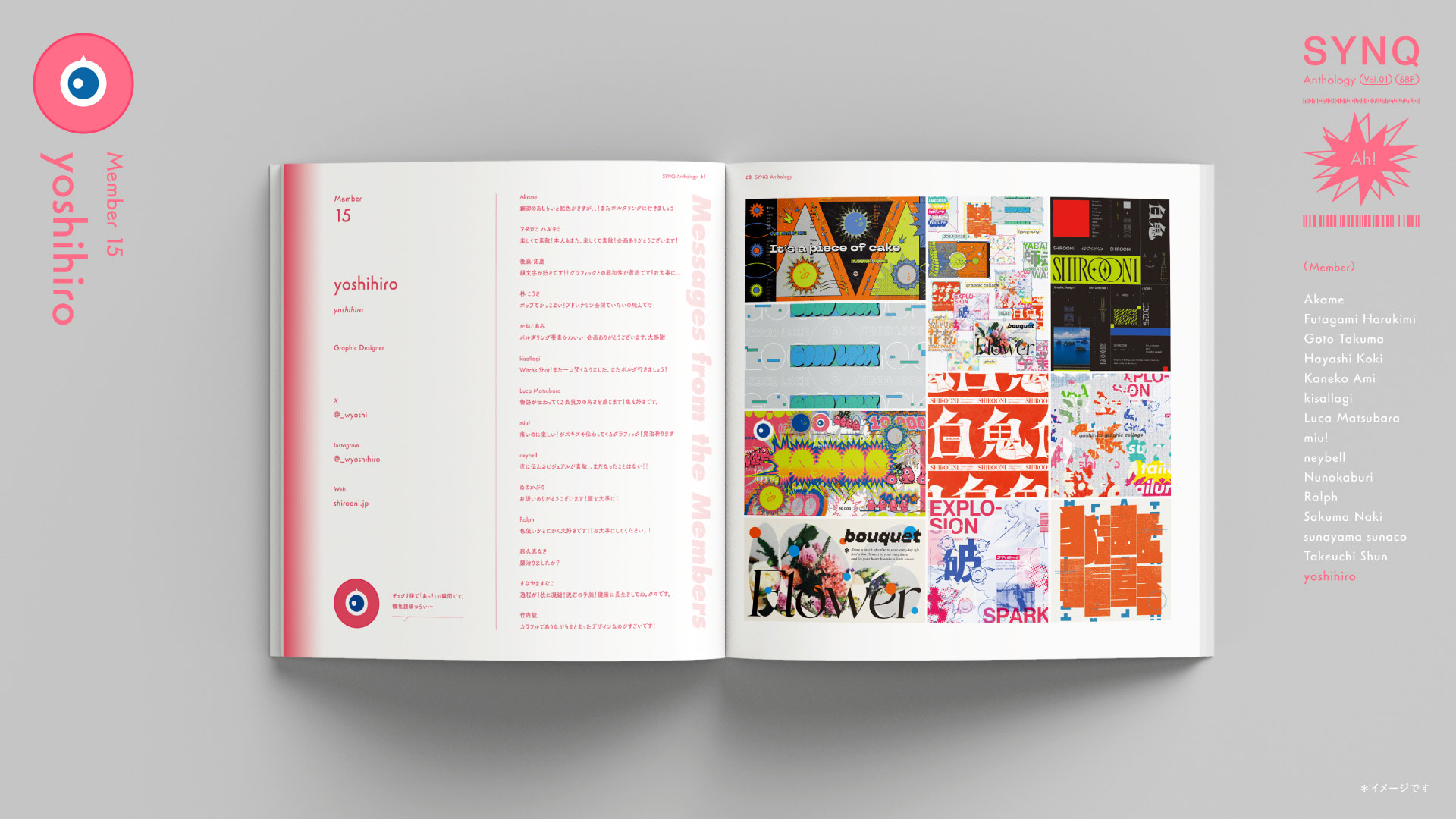この合同誌には、いろいろなデザイナーやイラストレーターが参加しています。この本が、好きなクリエイターをきっかけに新しい誰かを知る入口になったらうれしいです。